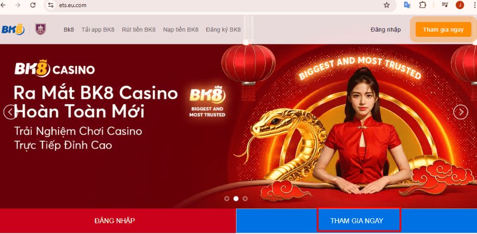- Truy cập link vào BK8 chính thức